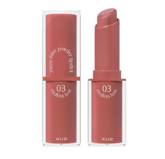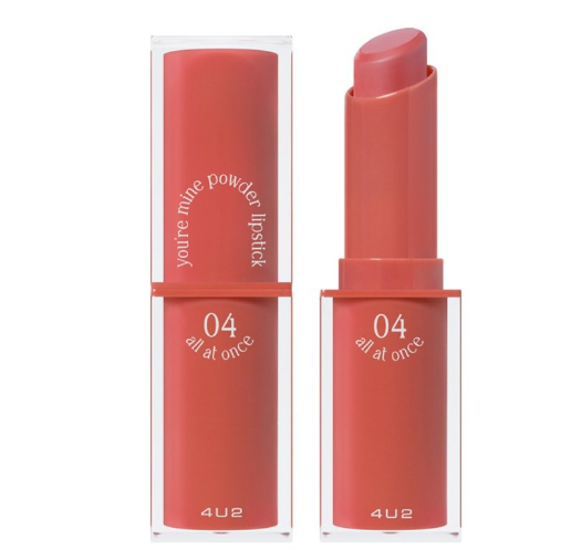 4U2 YOU'RE MINE Powder Lipstick هو أحمر شفاه بودري مبتكر يجمع بين أناقة اللمسة المطفأة، الراحة، واللون الغني. إنه يقدم حلاً مثالياً لمن يبحث عن أحمر شفاه يمنح لمسة نهائية مخملية ناعمة، ثباتاً يدوم طويلاً، ومظهراً مريحاً على الشفاه. بفضل تشكيلة ألوانه الواسعة وتركيبته الفريدة، فإنه الخيار الأمثل لكل من ترغب في إطلالة عصرية وجذابة. اختاري لونكِ المفضل، ودعي شفاهكِ تتألق بجمال فريد