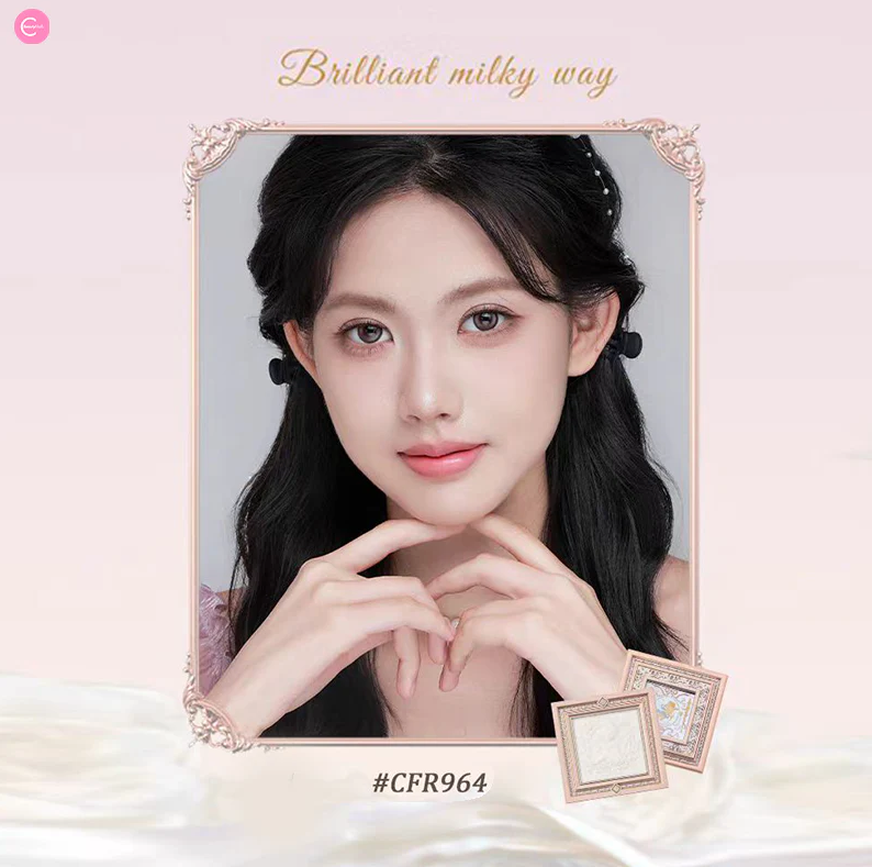 بودرة مضغوطة ناعمة غنية بالأصباغ وجزيئات الإضاءة العاكسة.