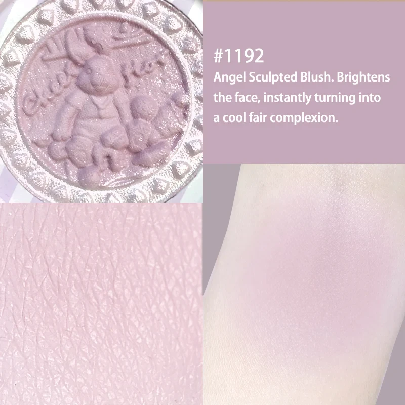 درجة #1192 (Angel Sculpted Blush Brightening): لون بنفسجي فاتح مخصص للتفتيح (Brightens the face)، يحول البشرة فوراً إلى مظهر بارد ومشرق (Cool fair complexion).