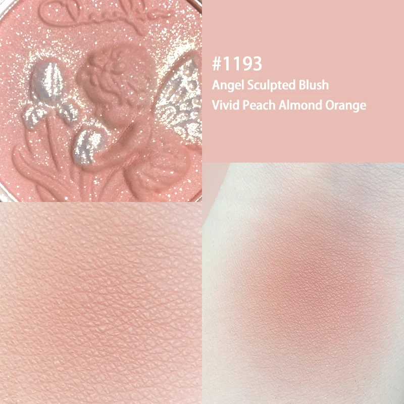 درجة #1193 (Angel Sculpted Blush Vivid Peach): لون خوخي مرجاني حيوي (Vivid Peach Almond Orange)، يضفي نضارة وإشراقة فورية للوجنتين.