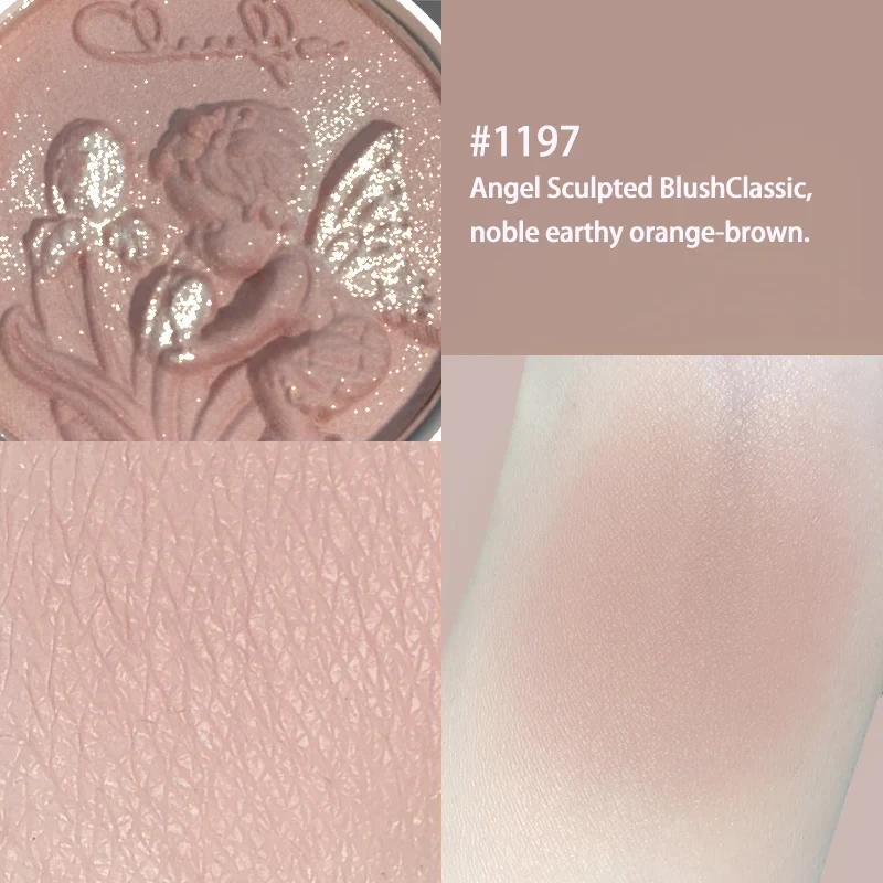 درجة #1197 (Angel Sculpted Blush Classic): لون برتقالي-بني أرضي راقٍ (Noble earthy orange-brown)، يمنح الوجه دفئاً كلاسيكياً جذاباً.