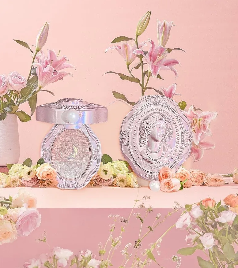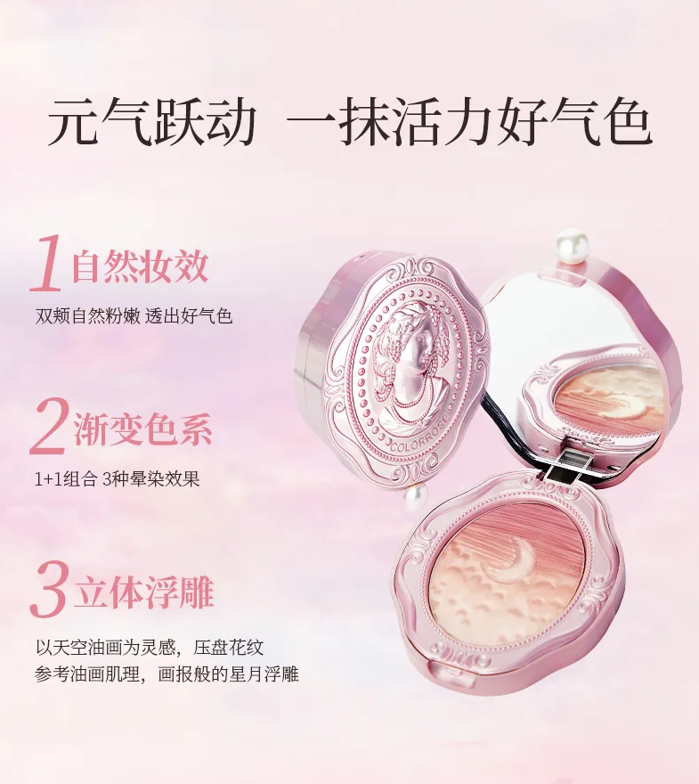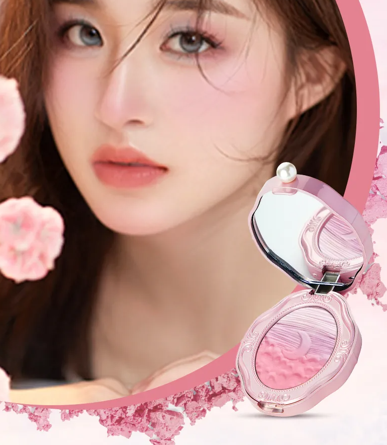 أحمر خدود بودرة مضغوطة يأتي بتصميم فني بارز (Embossed) يصور مشهداً للسحب والقمر بنقوش دقيقة