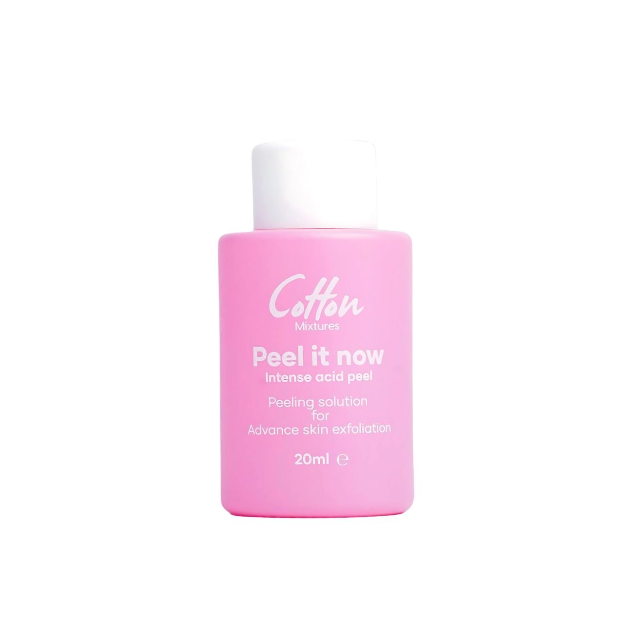 Cotton Peel it now Intense acid peel هو منتج تقشير كيميائي قوي مصمم لتوفير تقشير متقدم للبشرة. يهدف إلى تحسين ملمس البشرة، وتقليل ظهور مشاكلها، ومنح البشرة مظهرًا أكثر نضارة. ومع ذلك، يجب استخدامه بحذر نظرًا لتركيز الأحماض.