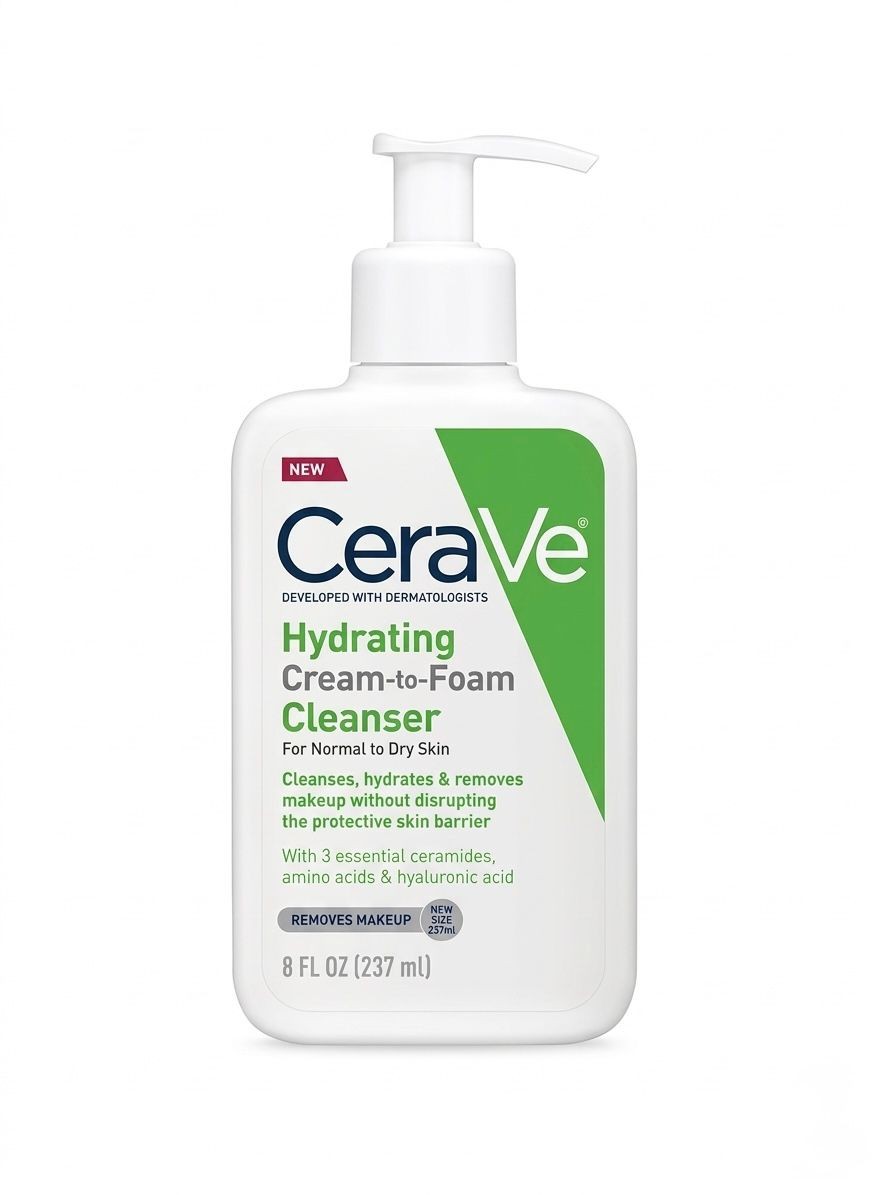 غسول CeraVe Hydrating Cream-to-Foam Cleanser هو منظف يومي مثالي للبشرة العادية إلى الجافة. تركيبته الفريدة تجمع بين التنظيف اللطيف والترطيب العميق لتنظيف البشرة وإزالة المكياج وتحسين مظهرها وملمسها دون الإخلال بحاجزها الطبيعي.