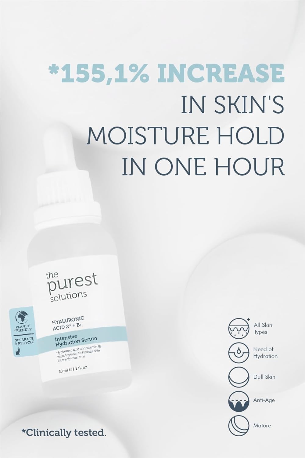 سيروم The Purest Solutions Intensive Hydration Serum هو سيروم مثالي للبشرة الجافة و المُتعطشة لل hydrates رطوبة. تركيبته المُرطبة و الغنية بحمض الهيالورونيك و فيتامين B5 تُوفر ترطيبًا عميقًا و يدوم طويلاً، مما يُساعد على الحفاظ على صحة البشرة و نعومتها و مرونتها.
