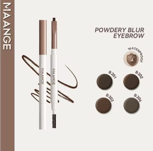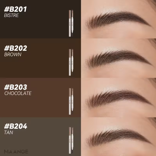 قلم حواجب مزدوج الطرف يجمع بين رأس التحديد وفرشاة دمج ناعمة.