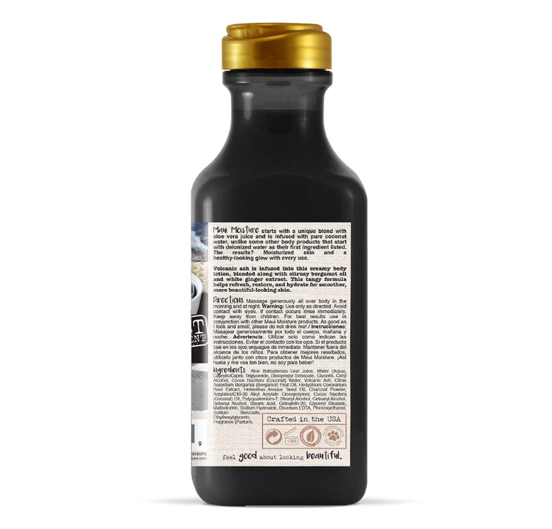 لوشن للجسم من Maui Moisture، مخصص لإزالة السموم من البشرة، غني بالرماد البركاني وزيت البرغموت والزنجبيل.