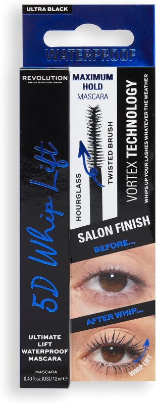 ماسكارا ذات تركيبة مقاومة للماء (Waterproof) ولون أسود فاحم (Ultra Black). تستخدم تقنية ڤورتكس (Vortex Technology) مع فرشاة ملتفة على شكل الساعة الرملية (Hourglass Twisted Brush) لرفع الرموش وتجعيدها وتكثيفها، مما يمنحها مظهرًا دراماتيكيًا ومرفوعًا يدوم طوال اليوم.