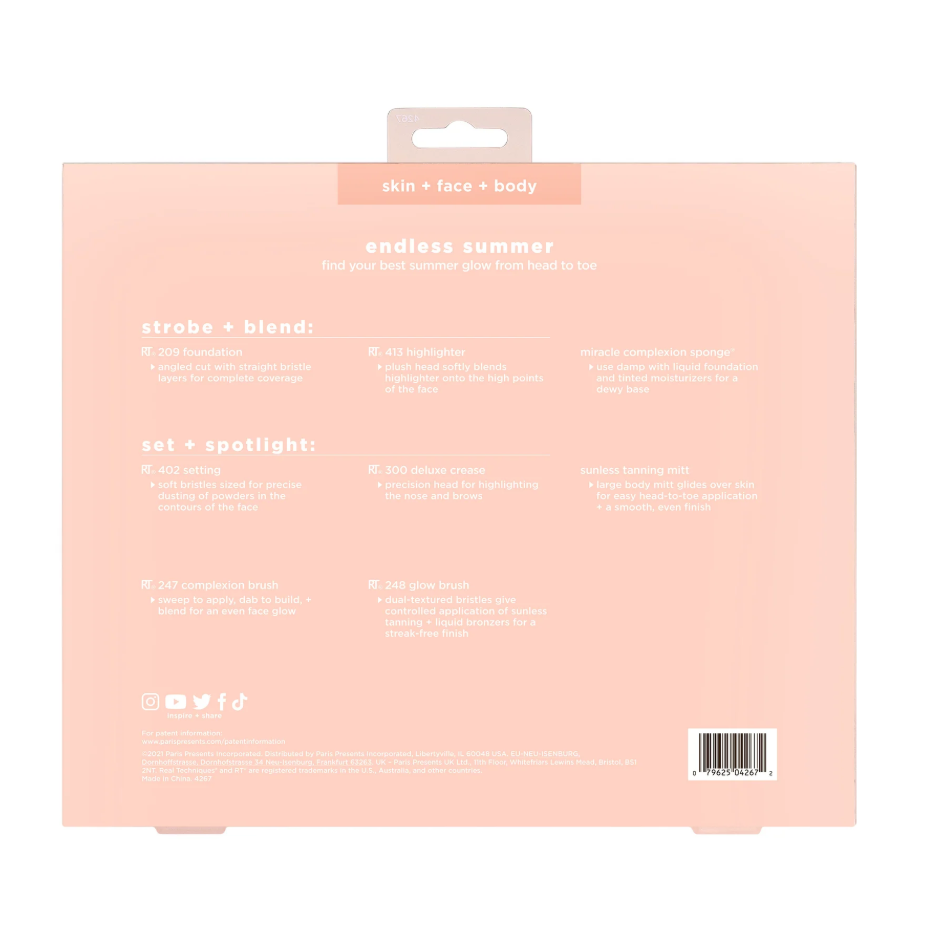 تُعد مجموعة "إندليس سمر" من ريل تكنيك هي الحقيبة الشاملة لكل امرأة تبحث عن إشراقة الصيف الدائمة؛ فهي تجمع بين دقة فرش الوجه وقوة أدوات الجسم لتمنحكِ مظهراً متجانساً ومشرقاً من الرأس حتى القدمين.