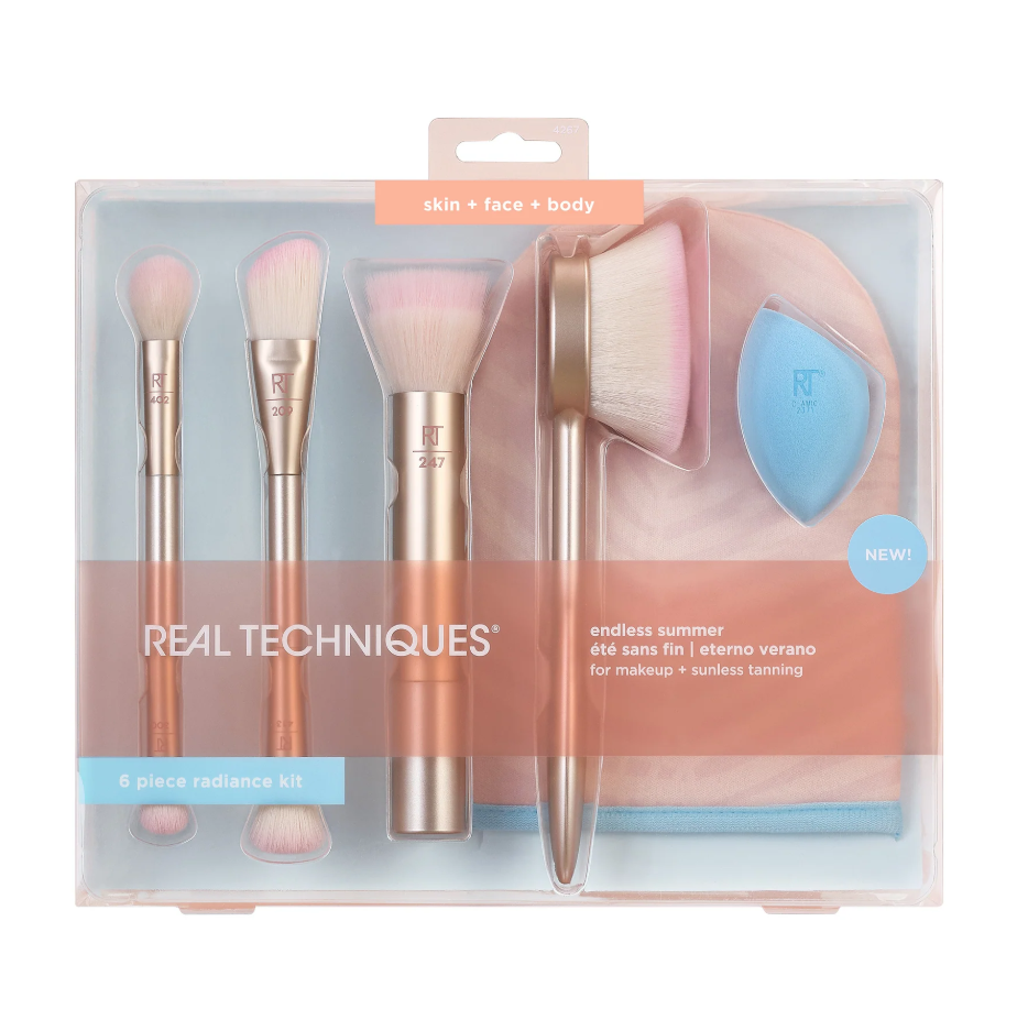 مجموعة أدوات تجميلية متكاملة من علامة "ريل تكنيك" الشهيرة، مصممة لمنحكِ إطلالة صيفية مشرقة وموحدة.