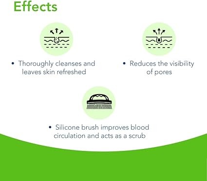 - تنظيف عميق للمسام ومعالجة حب الشباب: تُزيل الأوساخ، الزيوت الزائدة، وبقايا المكياج من المسام، وتُساعد المكونات النشطة في مكافحة البكتيريا المُسببة لحب الشباب.