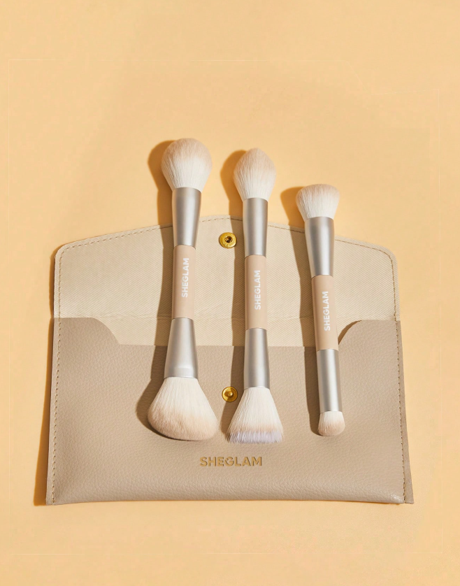 تتكون المجموعة من 3 فرش "ثنائية الطرف"، مما يمنحكِ 6 رؤوس فرش مختلفة للتعامل مع كافة تفاصيل مكياج الوجه والعيون.