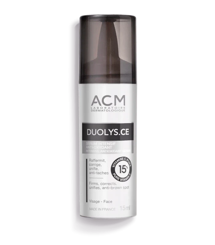 ACM Duolys.CE Intensive Serum هو سيروم مركز مضاد للأكسدة مصمم خصيصًا للبشرة المعرضة لعلامات الشيخوخة المبكرة. يحتوي على تركيبة غنية بفيتامين C النقي بنسبة 15٪ لتوحيد لون البشرة، وتقليل ظهور التجاعيد والخطوط الدقيقة، ومكافحة البقع الداكنة.