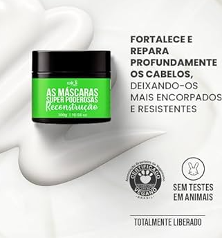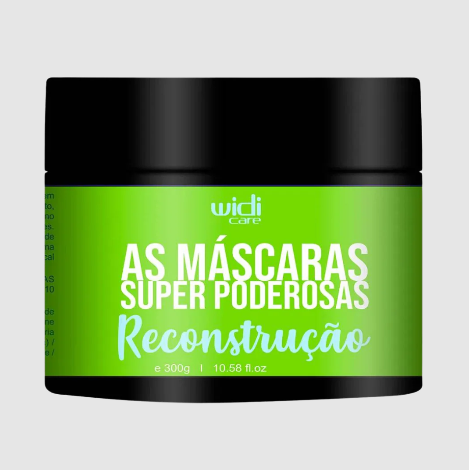 ماسك علاجي مكثف من مجموعة "الأقنعة الخارقة" (Super Poderosas) من العلامة البرازيلية "ويدي كير"، مخصص لمرحلة "إعادة البناء" (Reconstruction) في جدول العناية بالشعر.