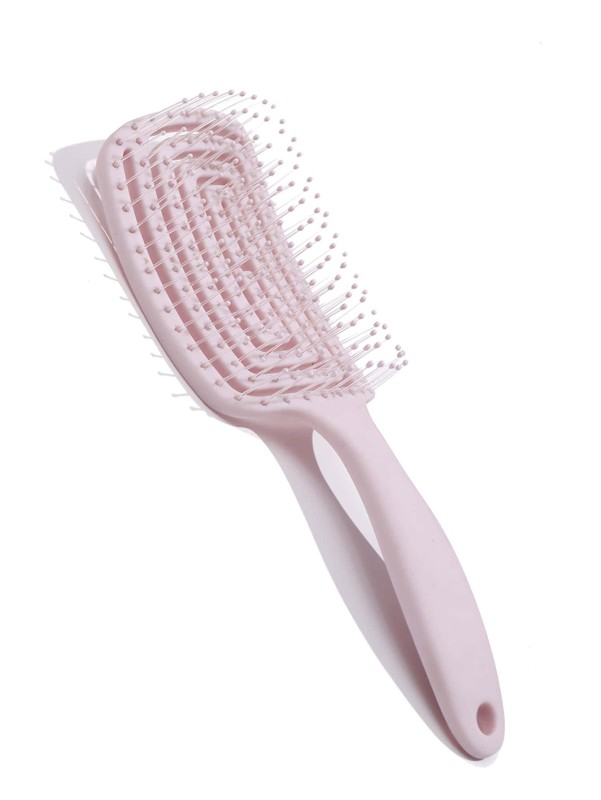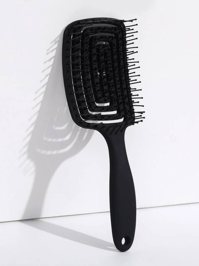 فرشاة لتصفيف الشعر والعناية به، مصممة لفك تشابك الشعر بلطف وتدليك فروة الرأس، مع تصميم مجوف أو "تهوية" فريد. تتميز بأسنان أو دبابيس مرنة ذات أطراف مستديرة، وقد تكون مصنوعة من مادة مرنة مثل البلاستيك أو السيليكون، مما يجعلها لطيفة على فروة الرأس والشعر.