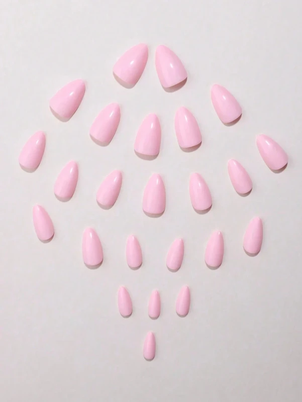 جميعها بلون وردي فاتح وناعم، وبتصميم أنيق على شكل اللوز القصير. يُضفي هذا الشكل على الأظافر مظهرًا طبيعيًا ورشيقًا، واللون الوردي السادة يُعطي إحساسًا بالنعومة والأنوثة. تُعد هذه الأظافر حلاً مثاليًا للحصول على مانيكير جذاب ومناسب للاستخدام اليومي، أو كقاعدة لابتكار تصاميم فنية بسيطة، وذلك دون الحاجة لزيارة صالون التجميل. تأتي المجموعة مع مبرد أظافر و"غراء جيلي" (Jelly Glue) لتسهيل التهيئة والتطبيق.