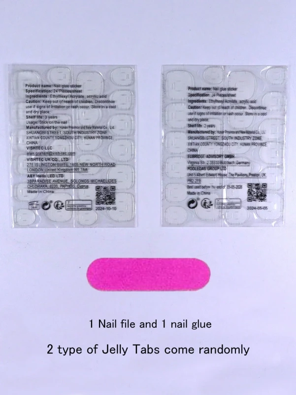 - ملحقات متكاملة: تأتي مع مبرد أظافر و"غراء جيلي" (مادة لاصقة على شكل جل) لتسهيل عملية التركيب.