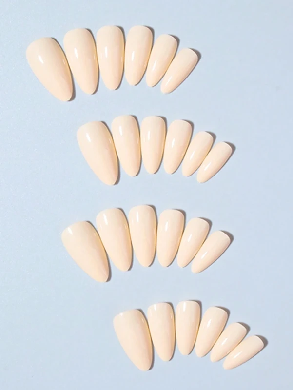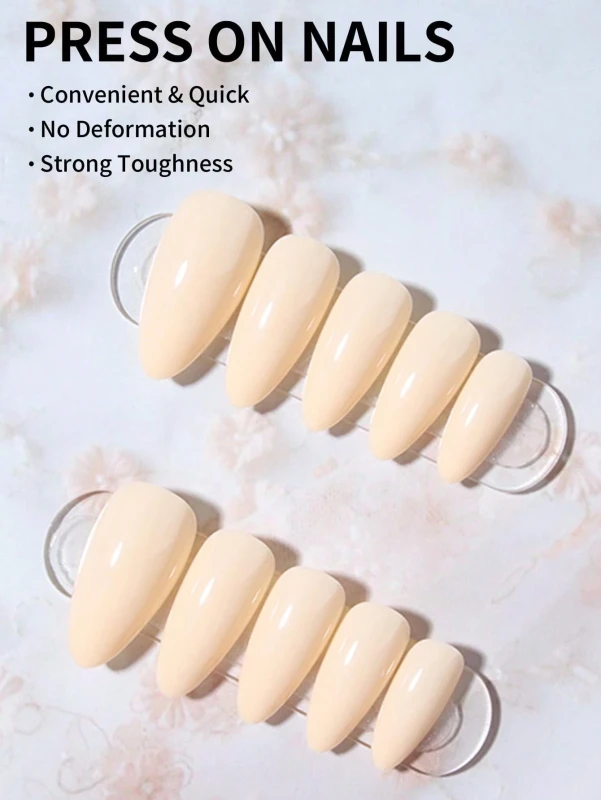 أظافر لاصقة بلون الفانيليا اللامع (Press On Nails)، طريقة عصرية وسهلة للحصول على أظافر أنيقة وناعمة.