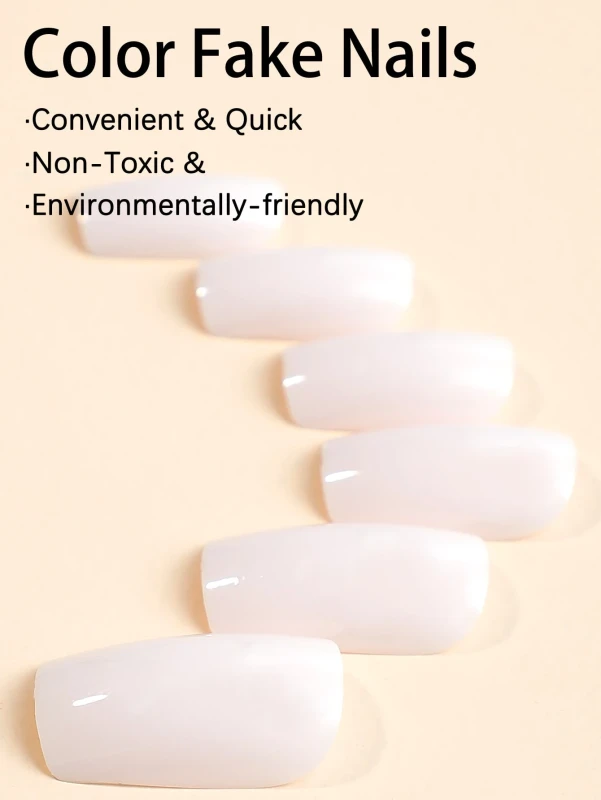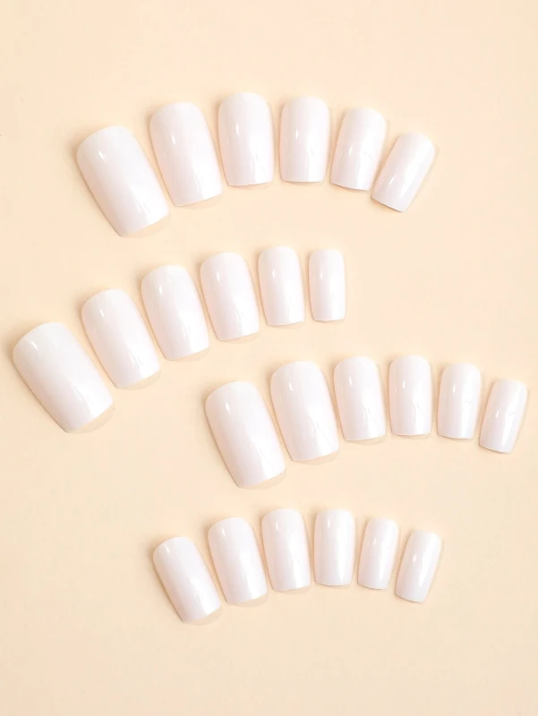 أظافر لاصقة باللون الأبيض السادة بشكل مربع (24 قطعة)، طريقة سهلة وعصرية للحصول على أظافر أنيقة ومصقولة بمظهر بسيط.