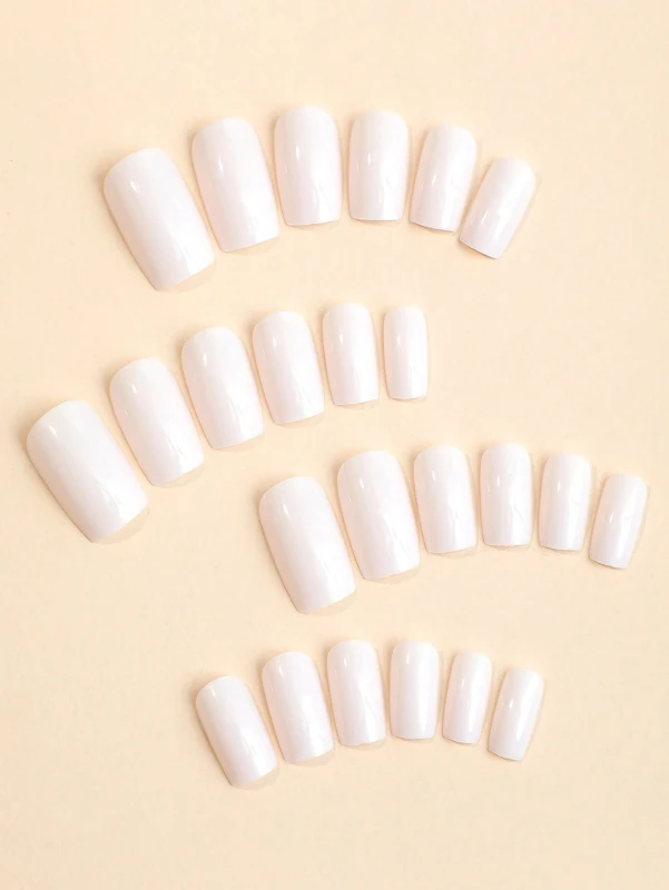 أظافر لاصقة باللون الأبيض السادة وشكل مربع (24 قطعة)، طريقة سهلة وعصرية للحصول على أظافر أنيقة ونظيفة المظهر.