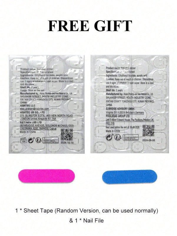 - المادة اللاصقة: تُباع بشكل منفصل أو تُرفق مع المجموعة على شكل ملصقات لاصقة (Jelly Glue) أو غراء سائل آمن للاستخدام على الأظافر.