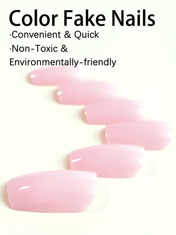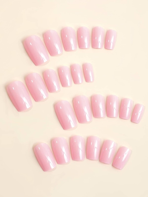 أظافر لاصقة باللون الوردي السادة وشكل مربع (24 قطعة)، طريقة سهلة وعصرية للحصول على أظافر أنثوية وناعمة بلمسة جمالية بسيطة.