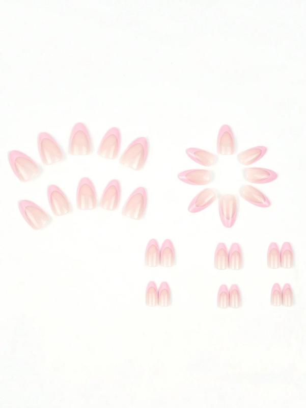 أظافر لاصقة بتصميم فرنسي أنيق بأطراف وردية ( 24 قطعة ) ، طريقة سهلة وجميلة للحصول على أظافر عصرية ومصقولة .