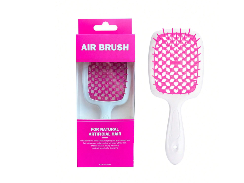 فرشاة الشعر المبتكرة بتصميمها المجوف والفريد. هذه الفرشاة ليست مجرد أداة لتمشيط الشعر، بل هي شريككِ الأمثل لتجفيف أسرع وأكثر صحة، وفك تشابك الشعر بلطف فائق. بفضل تصميمها المسامي الذي يسمح بتدفق الهواء بحرية، وشعيراتها المرنة، تعمل على تقليل وقت التجفيف، وتجنب الشد غير الضروري، وتناسب جميع أنواع الشعر سواء كان مجعداً، مموجاً، جافاً، أو رطباً. استمتعي بتجربة تصفيف مريحة وشعر خالٍ من العقد، ناعم، ولامع.