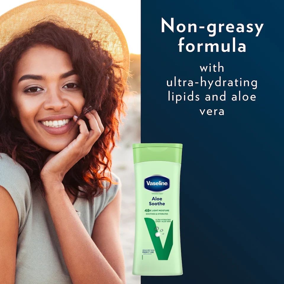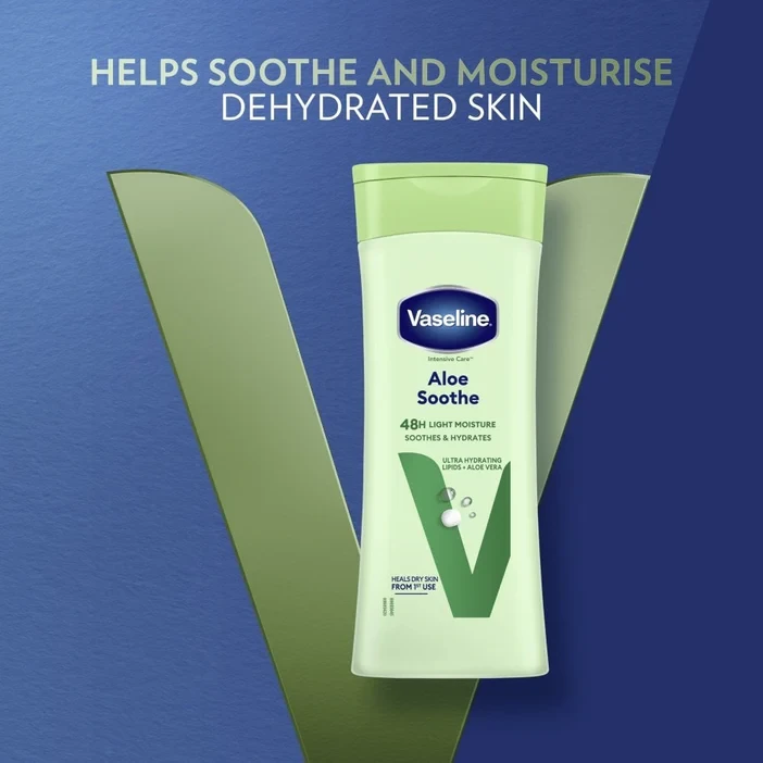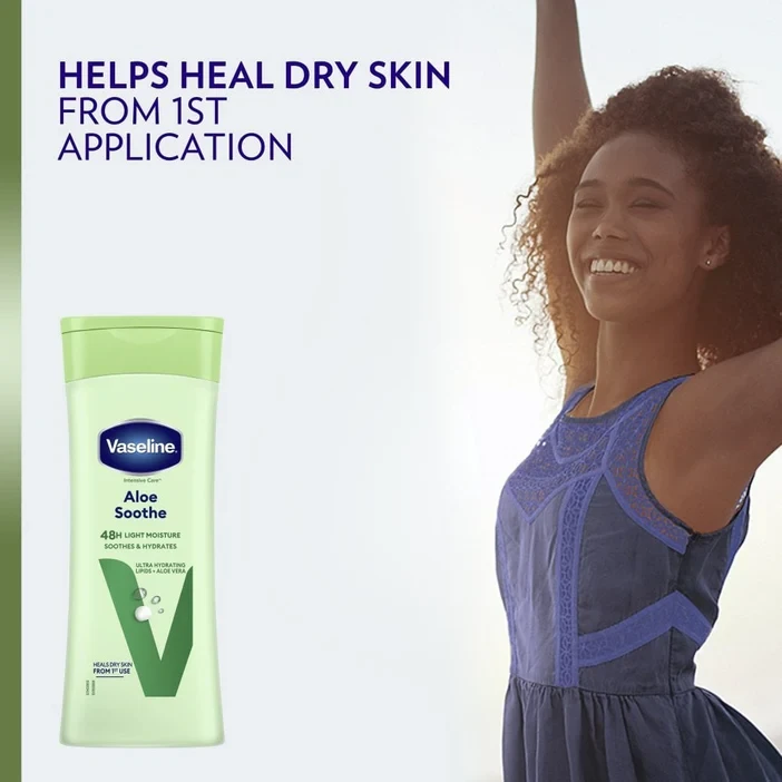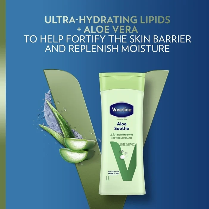 هل تعاني بشرتكِ من الجفاف الخفيف، التهيج، أو تحتاج إلى ترطيب خفيف ومنعش يهدئها ويجعلها ناعمة؟ اكتشفي Vaseline Intensive Care Aloe Soothe Lotion.