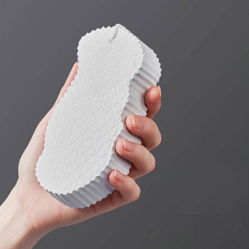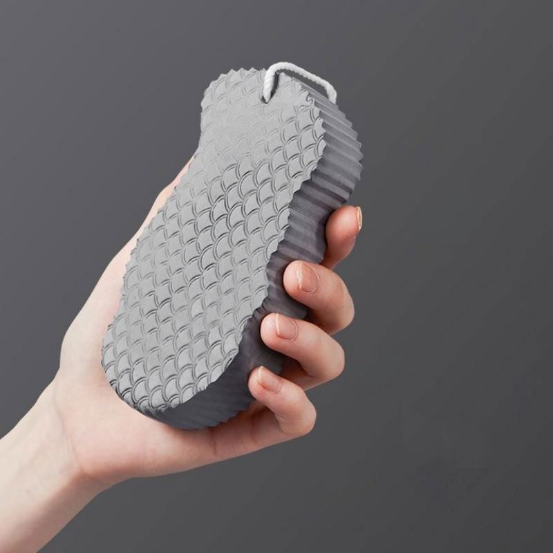 هي إسفنجة استحمام ناعمة مصنوعة من مادة PVA عالية الكثافة، مصممة خصيصاً لتقشير البشرة بعمق وإزالة الخلايا الميتة والشوائب من سطح الجلد دون الحاجة لاستخدام مواد كيميائية قوية. تتميز بسطح ذو ملمس بارز (نمط قشور السمك) لزيادة كفاءة التنظيف.