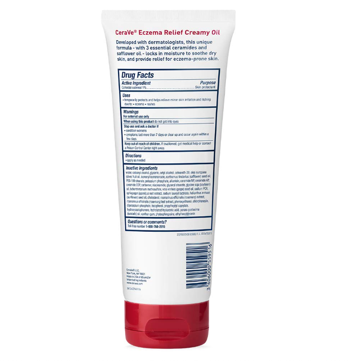 CeraVe Eczema Relief Creamy Oil هو منتج فعال لترطيب وتهدئة البشرة المصابة بالإكزيما. تركيبته الفريدة تجمع بين خصائص الكريم والزيت، وتوفر ترطيبًا عميقًا مع تخفيف الحكة، وذلك بفضل احتوائه على دقيق الشوفان الغروي والسيراميدات وزيت القرطم.