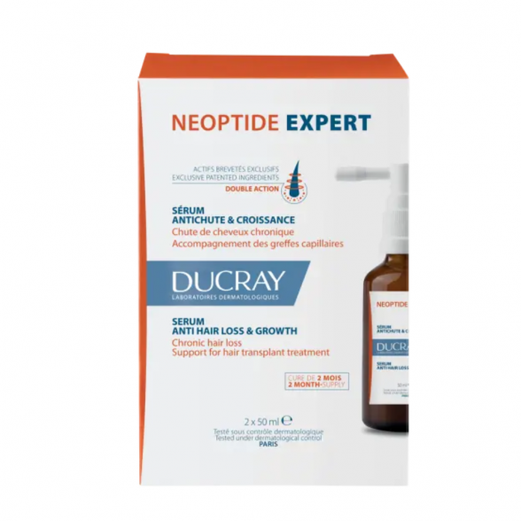 Ducray Neoptide Expert Serum هو سيروم فعال للعناية بالشعر مصمم لمعالجة تساقط الشعر المزمن وتحفيز نمو الشعر. يمكن أن يساعد على تحسين مظهر الشعر وجعله أكثر كثافة وقوة وصحة.