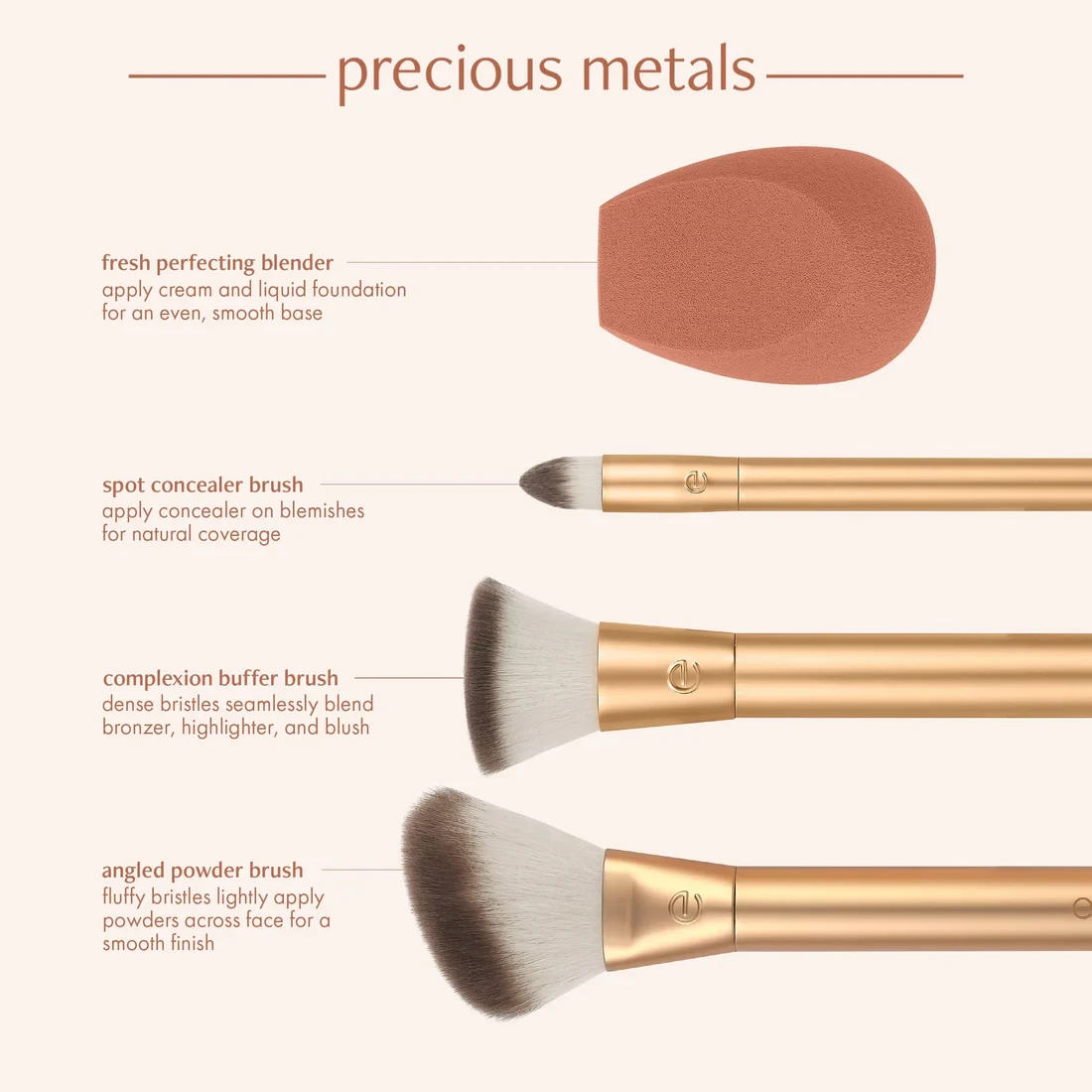 مميزات مجموعة فرش EcoTools Precious Metals Face Blend + Sculpt Set