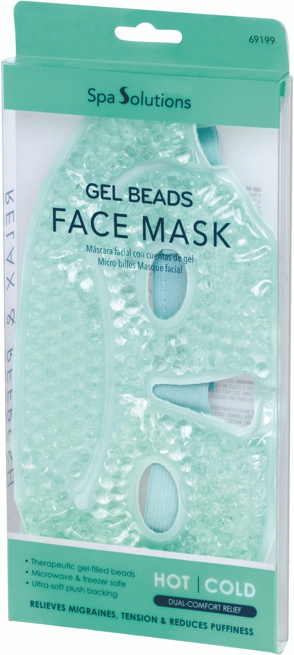 قناع علاجي للوجه محشو بخرز الجل، مصمم لتوفير راحة مزدوجة عن طريق العلاج بالحرارة أو البرودة.