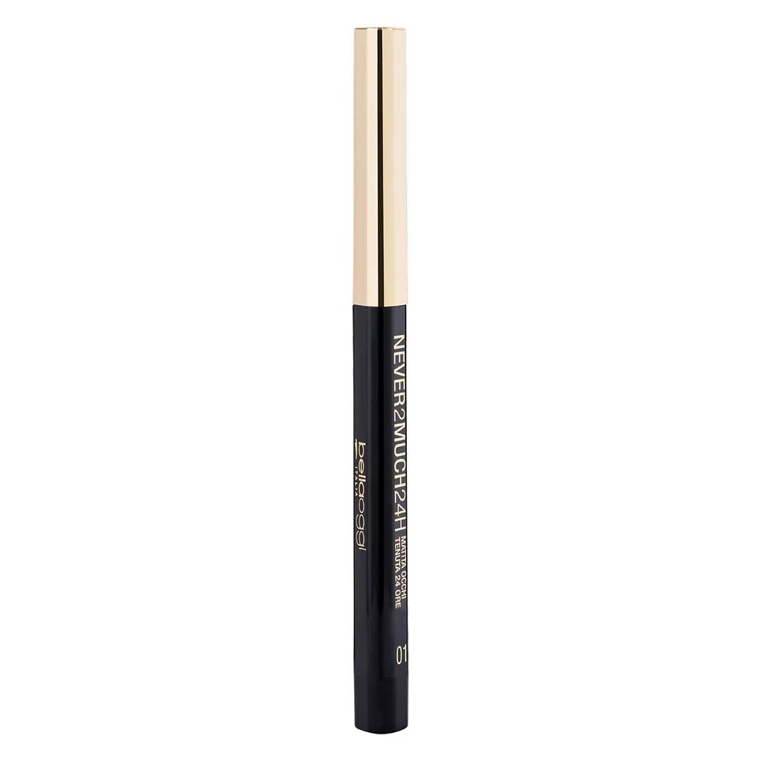 قلم تحديد العيون بيلاوجي نيفر تو ماتش 24 ساعة هو خيار ممتاز للحصول على عيون مُحددة ومُلفتة. تركيبته الكريمية تُسهل رسم خطوط مُحددة وواضحة، ولونه الأسود الغني يُعطي عينيكِ مظهرًا دراميًا وجذابًا.