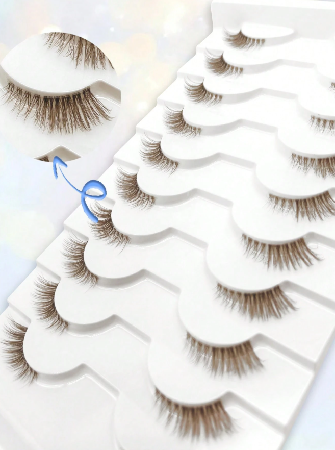 هي مجموعة من الرموش الاصطناعية المصممة لمنح العين مظهراً طبيعياً وجذاباً. تتميز هذه الرموش بلون بني فاتح وشعيرات متباعدة، مما يجعلها تندمج بسلاسة مع الرموش الطبيعية دون أن تبدو مبالغاً فيها.