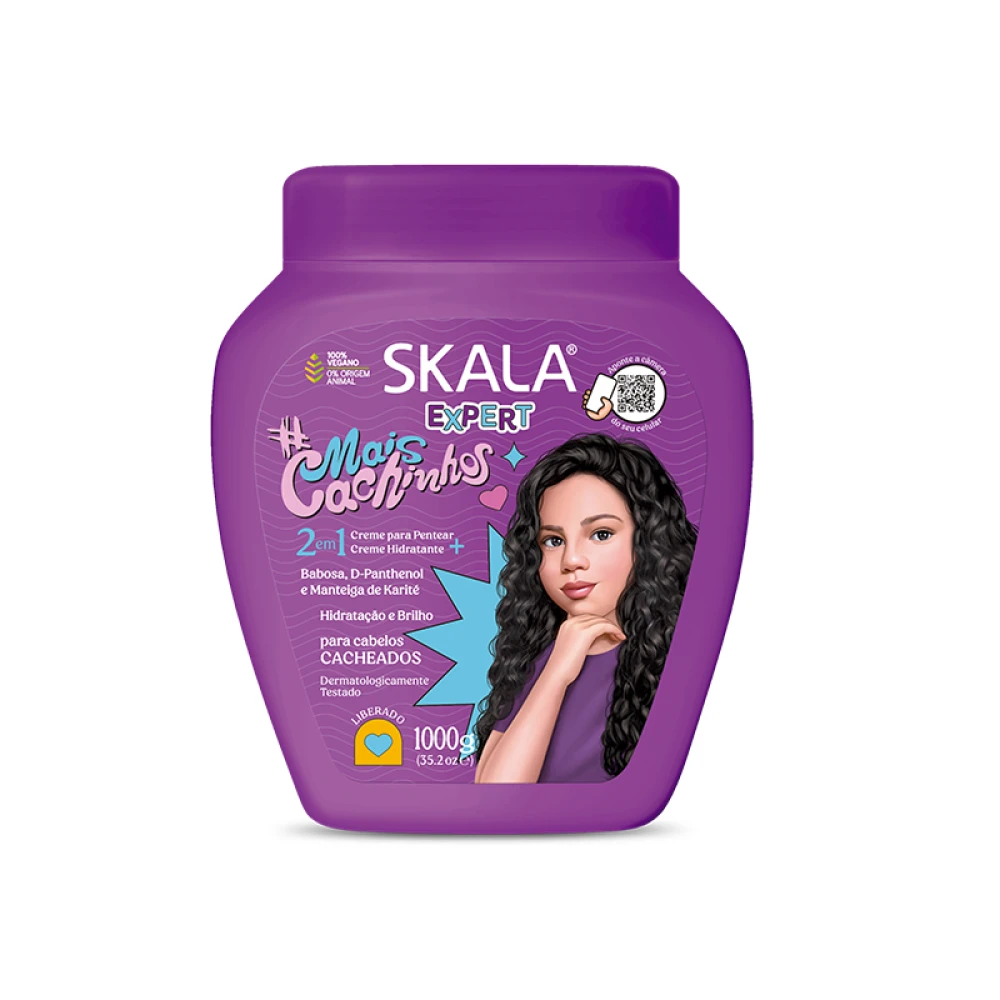 كريم سكالا إكسبرت #Mais Cachinhos (المزيد من التموجات) للأطفال هو كريم 2 في 1 يُستخدم كماسك للشعر وكريم تصفيف يُترك على الشعر. مُصمم خصيصًا للشعر المجعد والمموج للأطفال، حيث يُرطبه بعمق ويُحدد تموجاته ويُكسبه لمعانًا ونعومة.