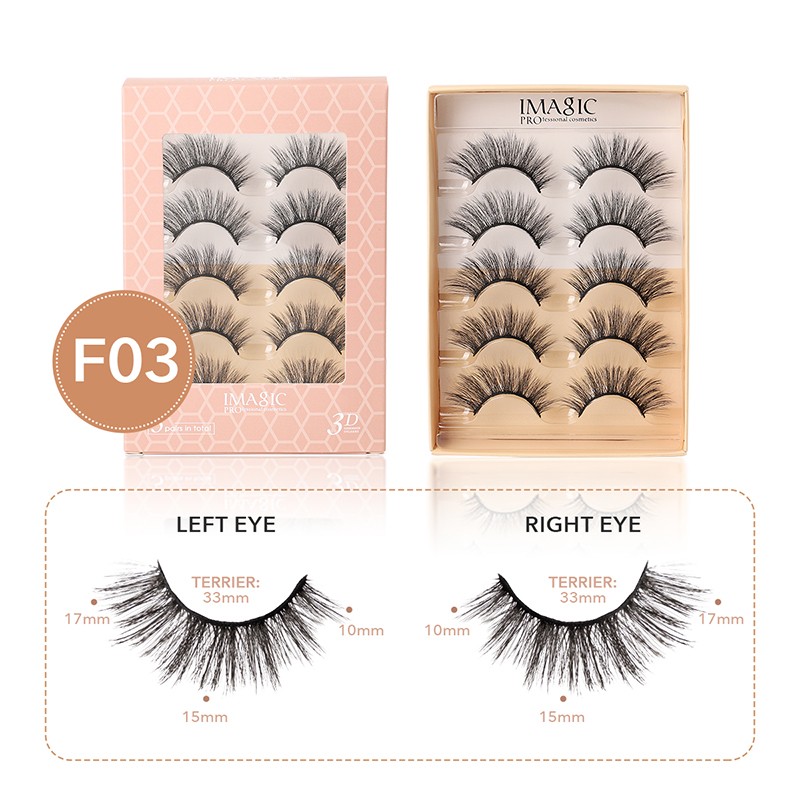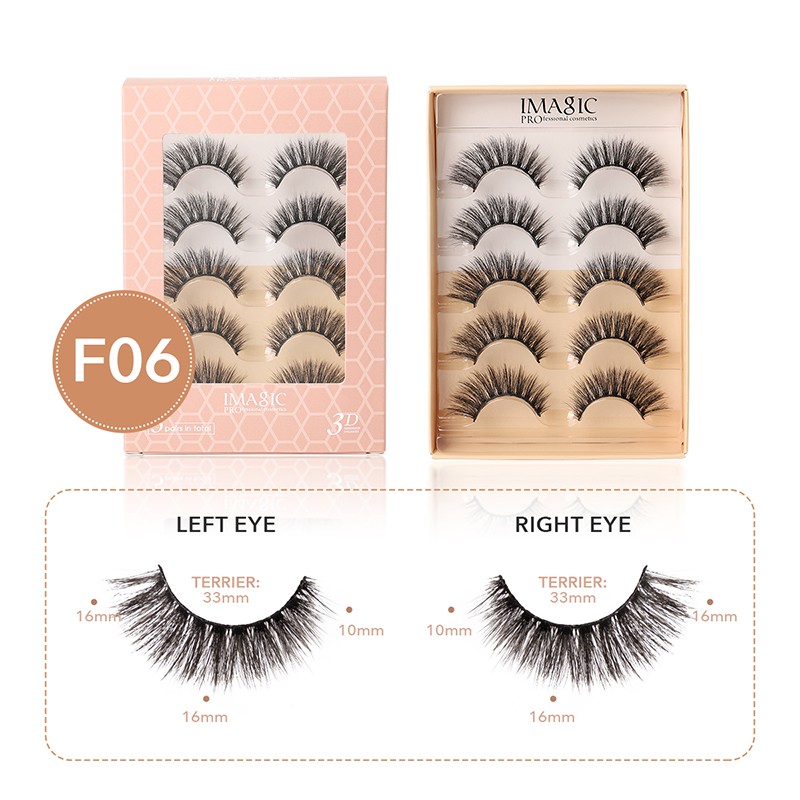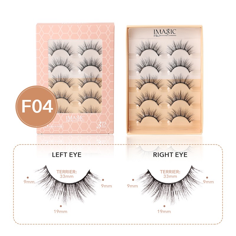 بكج من 5 أزواج من الرموش الصناعية ثلاثية الأبعاد يدوية الصنع من IMASIC، مصممة لإعطاء عينيكِ مظهرًا طبيعيًا و جذابًا. الرموش ناعمة و خفيفة الوزن و سهلة التطبيق و تُناسب جميع أشكال العيون.