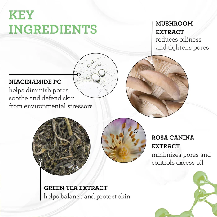- Pore Vanish™ Complex (مركب بور فانيش): مزيج خاص من المكونات التي تعمل على: