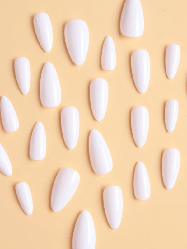- أظافر لاصقة باللون الأبيض السادة بشكل اللوز الطويل هي خيار أنيق وعملي للحصول على أظافر جذابة ونظيفة المظهر بسرعة وسهولة. تُقدم لكِ هذه المجموعة الحل الأمثل لتجديد مظهر يديكِ بلمسة جمالية عصرية دون عناء، مع إمكانية التزيين حسب ذوقكِ.